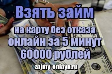 Взять займ на карту без отказа онлайн за 5 минут 60000 рублей